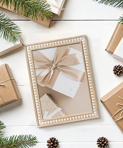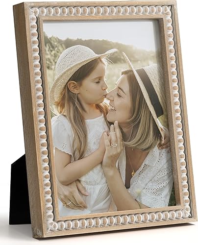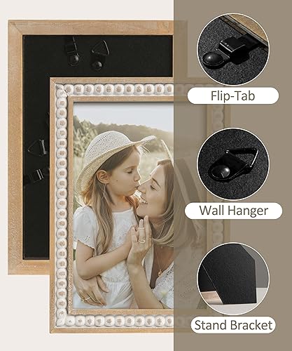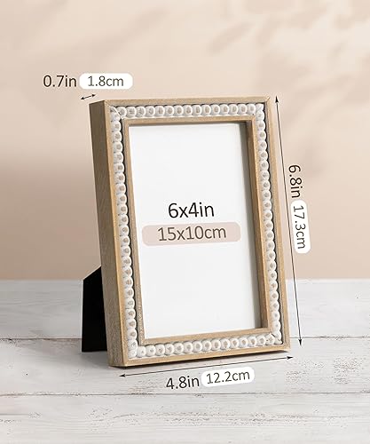 SUMGAR Cadre Photo Boho 10x15 Cm En Bois Cadre Rustique En Couleur Bois Avec Perles En Bois Cadre Vintage En Pin Pour Décoration Murale Idéal Pour Noël La Saint-Valentin Et Les Anniversaires