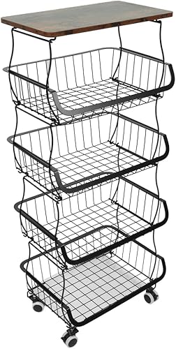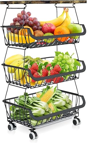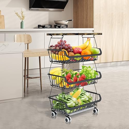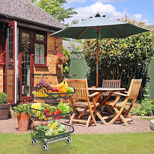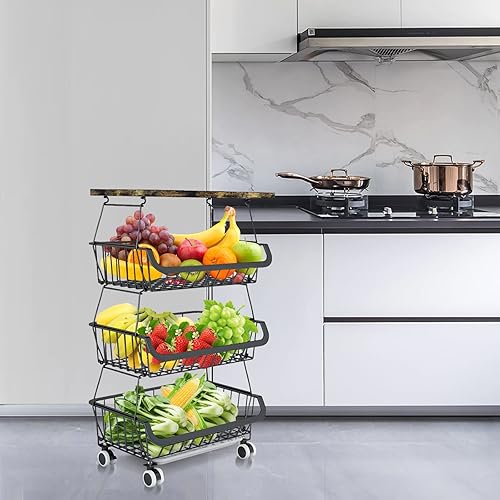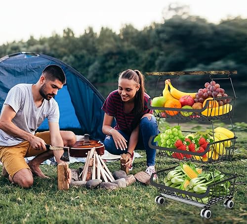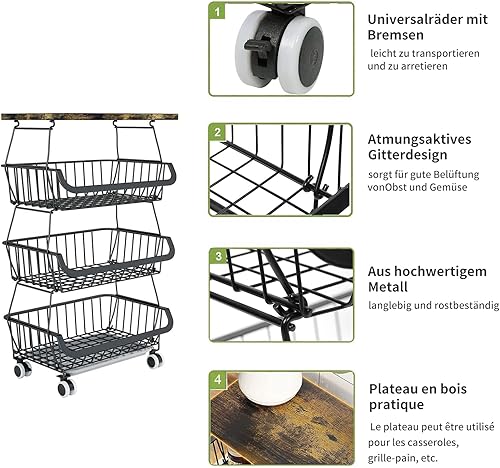 OHMG Panier Legumes Rangement,Panier de Fruits et Legumes avec Roues,Corbeille à Fruits à 5 Niveaux,Étagère à légumes,Chariot pour la Cuisine, Garde-Manger,Les Toilettes,Garage