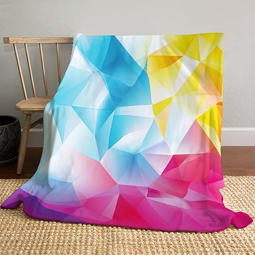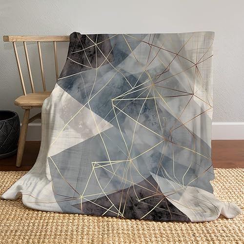 MIATCENRT Couverture Polaire 130x150cm Adulte Maillage Triangle, Géométrie Lignes Moelleuse Plaid Canape Polaire en Microfibre pour Canapé et Lit, Plaid Couvertures Lit Flanelle Chaude, Gris Bleu