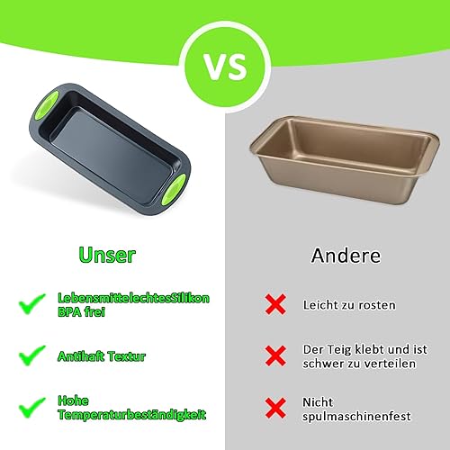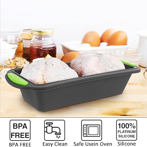 Siliz Lot de 2 moules à pain en silicone résistant à la température et anti-adhérent pour four, congélateur - Moule à pâtisserie indéformable pour gâteaux, pains ou pains - 27,5 x 14 x 6,5 cm