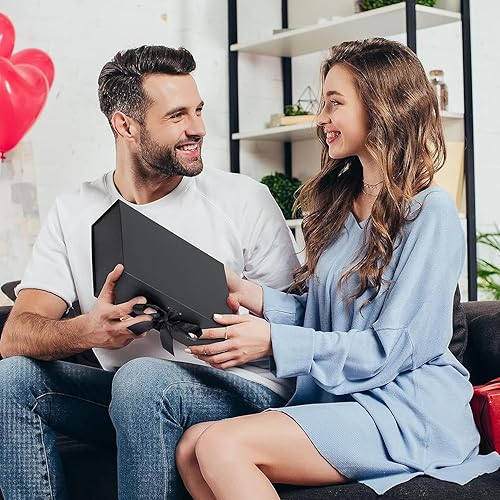 Coffret cadeau avec nœud, boîte cadeau magnétique avec couvercle, boîte d'emballage cadeau réutilisable, pour anniversaire, Noël, Saint-Valentin (rouge)