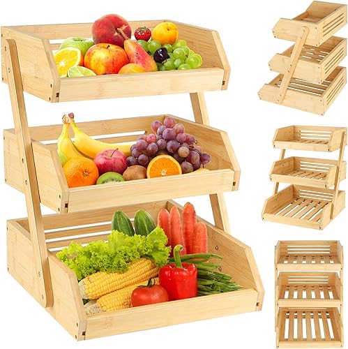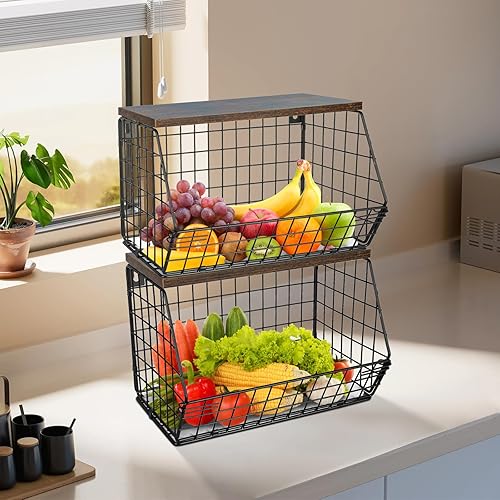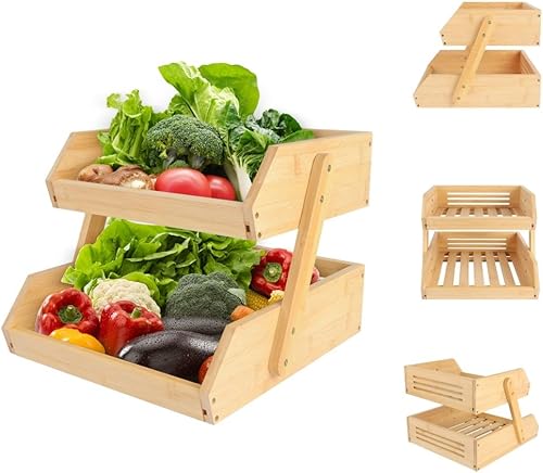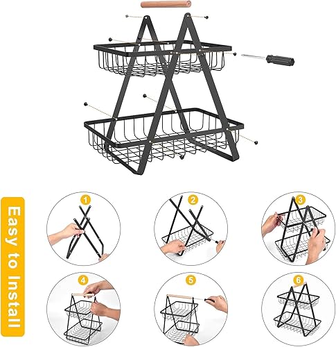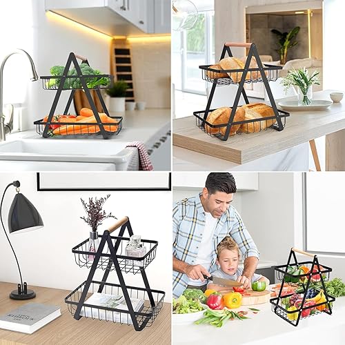 Corbeille à Fruits, Panier a Fruit 2 Niveaux, Support pour Comptoir de Cuisine, Acier Amovible Panier de Legumes Organisateur, Corbeille Fruit pour Légumes Fruits Collations à la Maison Cuisine