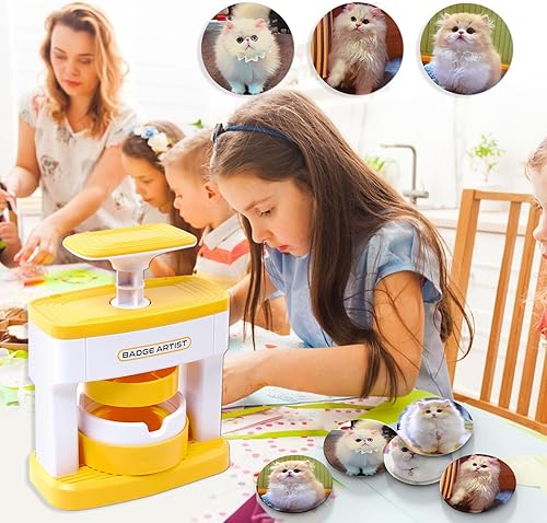 Dechoga Machine à Badges 55 mm - Appuyez sur la Machine à Boutons DIY - Kit de Fabrication de Badges avec 48 Pièces en Plastique, Coupe-Cercles et Livre Magique pour Fête et Cadeaux