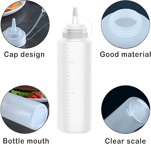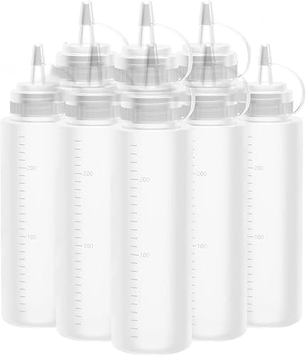 FBDSUFH 8 Pièces Bouteilles Condiments Plastique, Bouteille Sauce avec Bouchon, Condiments Squeeze Bouteilles, Flacons Transparents pour Sauce, pour Ketchup, Moutarde, Huile Dolive, Mayo (240ml, 8oz)
