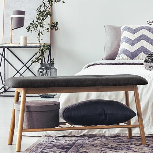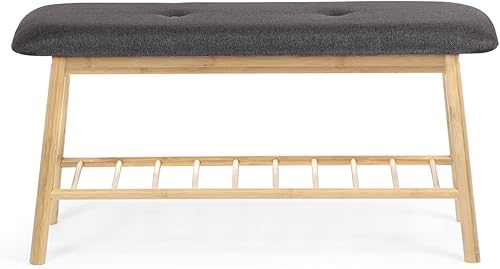 IDMarket - Banc d'entrée capitonné Bambou Rita Tissu Gris foncé