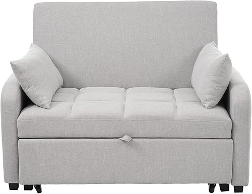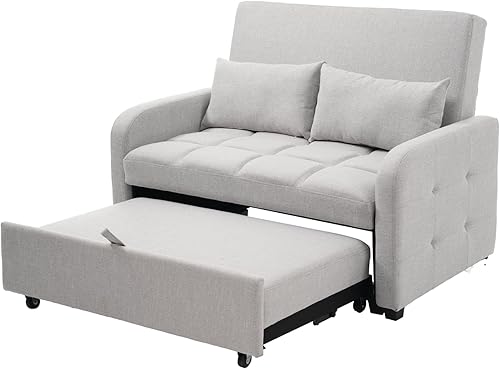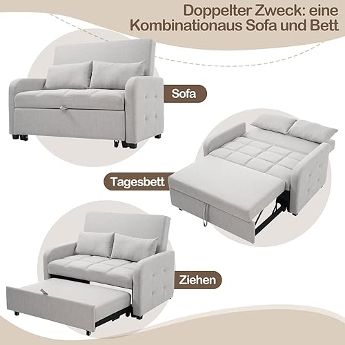 KOMHTOM Canapé-lit Pliant Multifonctionnel avec Dossier Réglable, Moderne Canapé Convertible 2 Places avec 2 Coussins, pour Salon, Chambres à Coucher (Gris Clair)