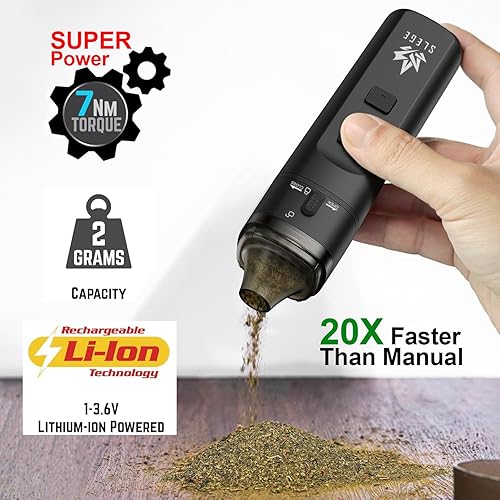 Grinder électrique,Grinder à épices électrique,Portable broyeur épices/pollen,Super Puissance 7 Nm,Broyage bidirectionnel sans blocage,Mouture rapide 1,5 g, Avec trémie,Bol,Tube Conique (noir) USB