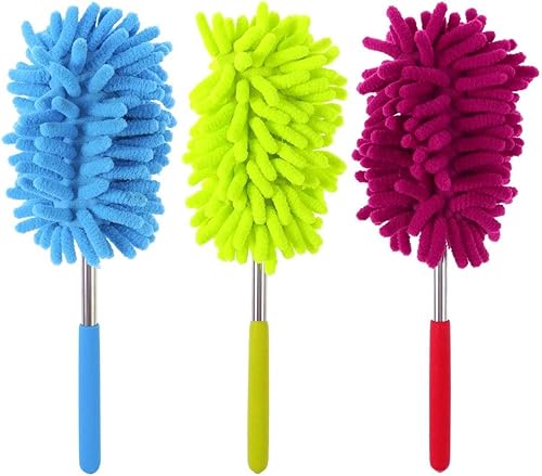 Plumeau Poussiere Microfibre avec tige télescopique pour éliminer la poussière et les taches sur les fenêtres et les meubles Lot de 3