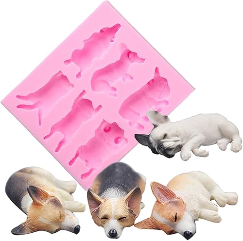 YYlingx Moules en silicone 3D en forme de chien endormi à 6 cavités - Corgi et bouledogue français - Moules en silicone pour savon, décoration de cupcakes
