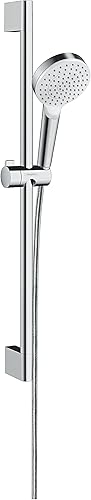 hangrohe Crometta - Set de douche, Ensemble de douche avec douchette, barre de douche 65cm, support de douche, flexible de douche 160cm et porte-savon, Blanc/chromé, 26553400
