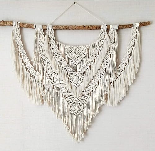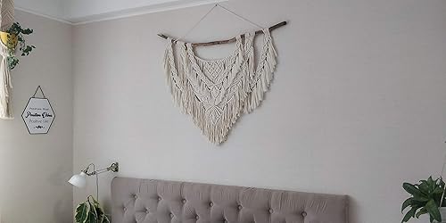 CBXSF Grande Tenture Murale en Macramé,90x85cm Bois flotté Naturel Bohème Murs Décor Tapisserie en Macramé Au-Dessus de la Tête de Lit Tapisserie Tissée, Beige