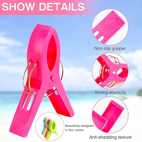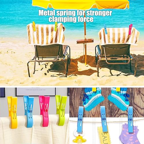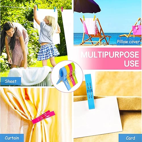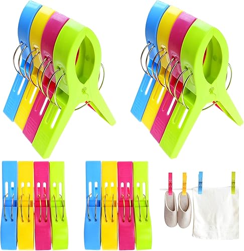 BITEFU Lot de 16 pinces à linge colorées grandes pinces en plastique pour linge quotidien, serviette de plage, serviette de bain, tapis - 4 couleurs