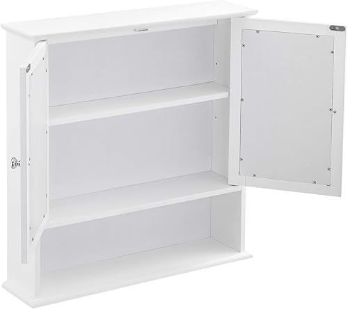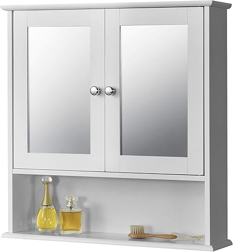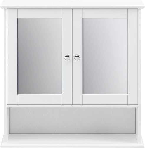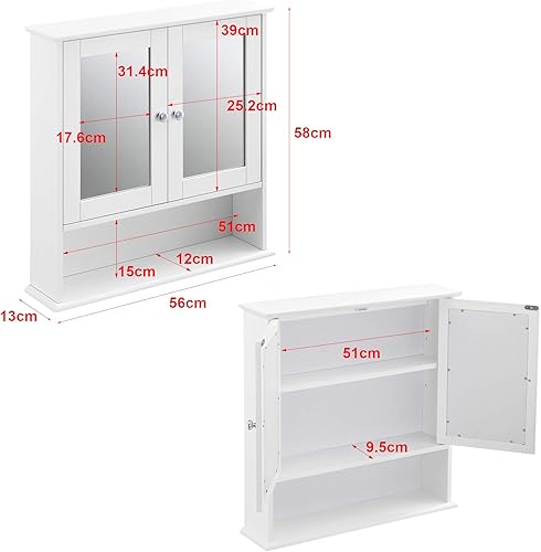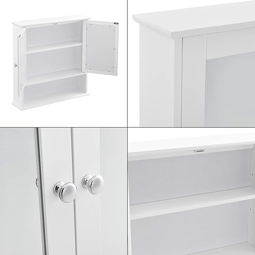 Placard Mural à Miroir Design Meuble de Rangement à Suspendre avec 2 Portes Étagère Réglable en Hauteur MDF 58 x 56 x 13 cm Blanc