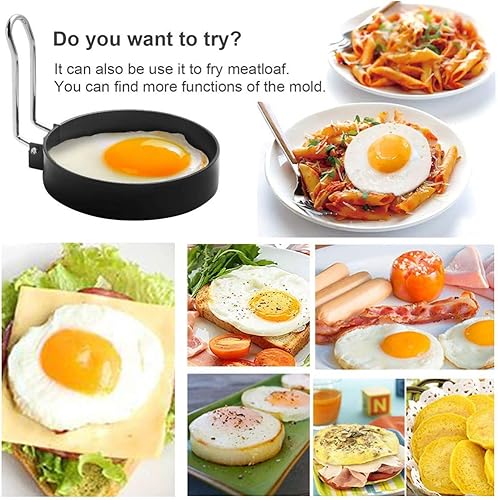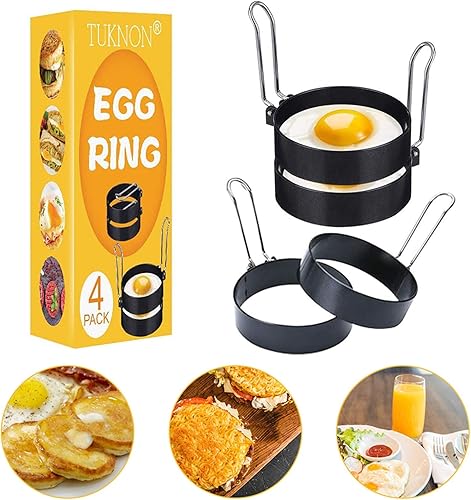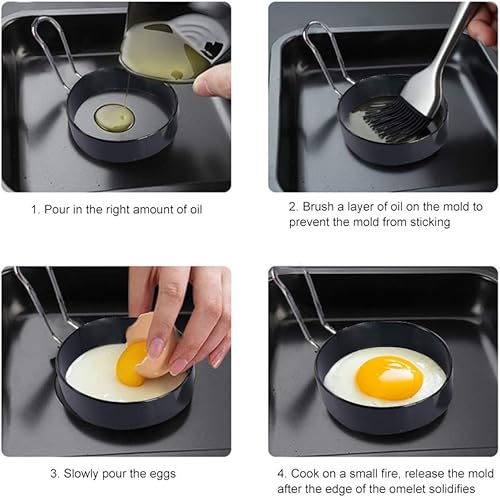 Anneau d'oeuf, Egg Ring, Anneaux à œufs en acier Inoxydable, 4 Pcs Anneaux à œufs Antiadhésifs avec Poignées Pliantes, Oeuf au Plat Moule pour muffins aux œufs/crêpes/omelettes
