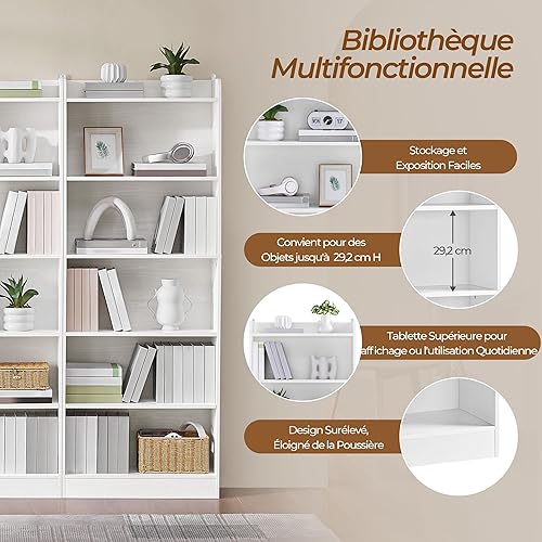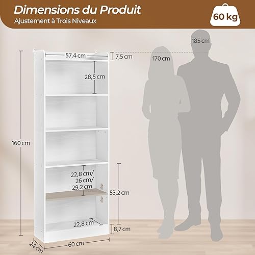 Yaheetech Bibliothèque, Meuble de Rangement sur 7 Niveaux Ouverts, Étagère Blanche Réglables à 3 Hauteurs Différentes, 24×60×180,5 cm, pour Salon Bureau Chambre Salle à Manger