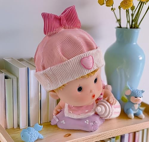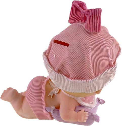 Kremers Schatzkiste Grande tirelire pour bébé fille rose peinte à la main 23 cm – Jolie décoration pour salon et étagère – Cadeau réconfortant pour les fêtes prénatales