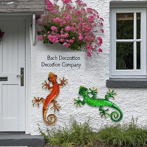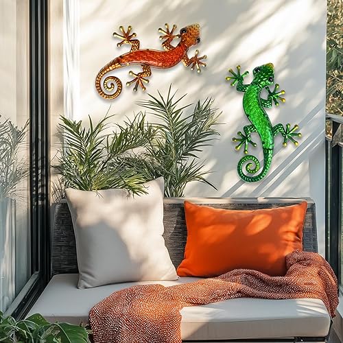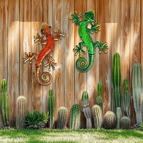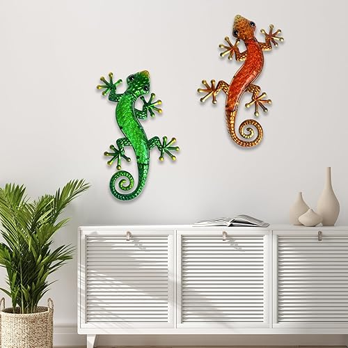 HONGLAND Lot de 2 décorations murales gecko en métal de 38,1 cm en forme de lézard à suspendre pour jardin, clôture, maison