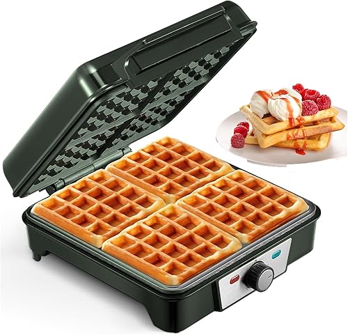 VINATO Gaufrier, Machine à Gaufre pour 4 Gaufres, 1200W Chaleur Rapide et Stable, Machine Gaufre avec Revêtement Antiadhésif des Plaques Chauffantes, Réglage Continu de la Température