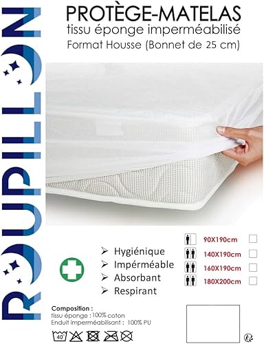 ROUPILLON Home Passion 100% Coton Molleton Matelas Protège, 180 x 200+25 cm Taille