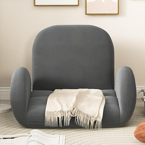 GOPLUS Fauteuil de Sol Pliable, Chaise de Méditation, 60 x 72 x 57CM, Chaise de Jeu avec Soutien Dorsal Réglable à 3 Positions et Accoudoirs Réglables à 5 Positions, Charge 150kg, Gris