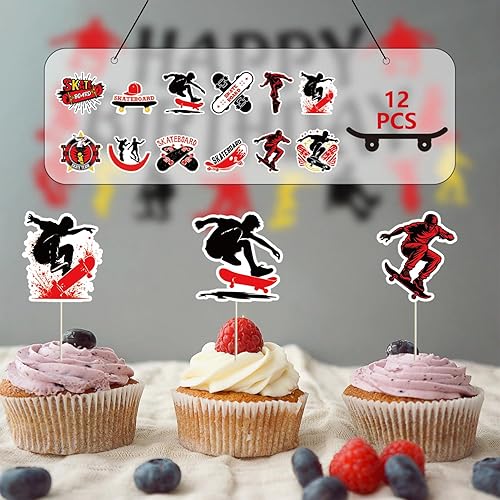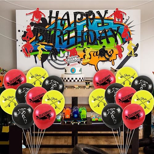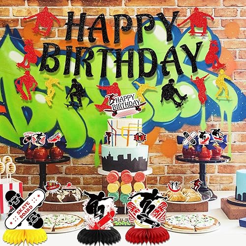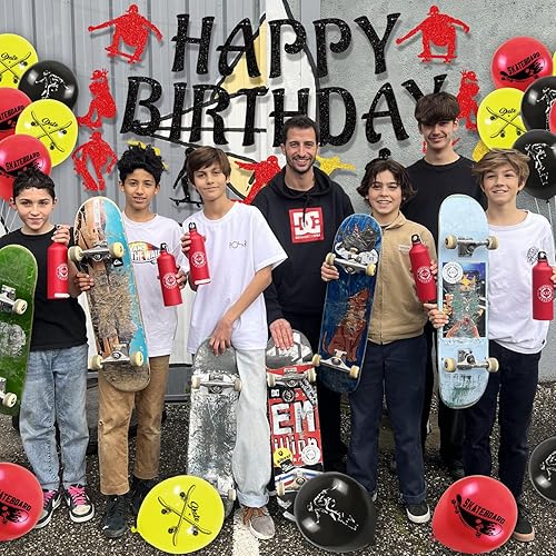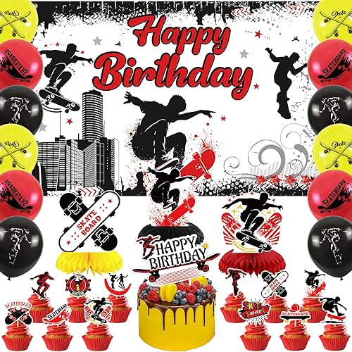 Obussgar Décorations de fête d'anniversaire pour skateboard, accessoires de fête, avec bannières, décorations de gâteau, centres de table, ballons pour skateboard, décorations de fête (LQ)