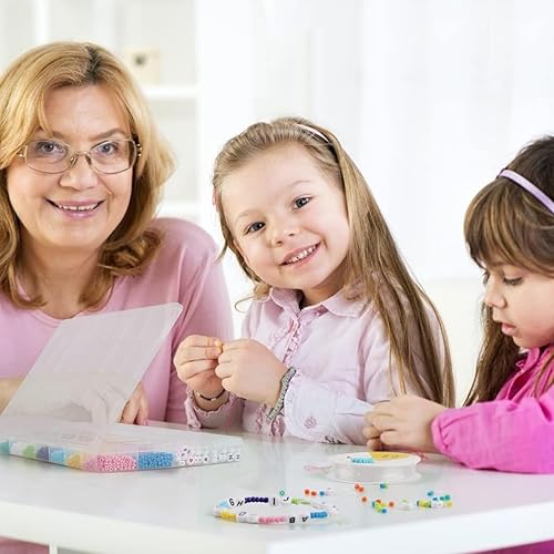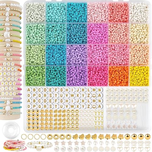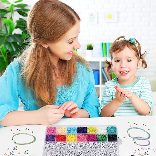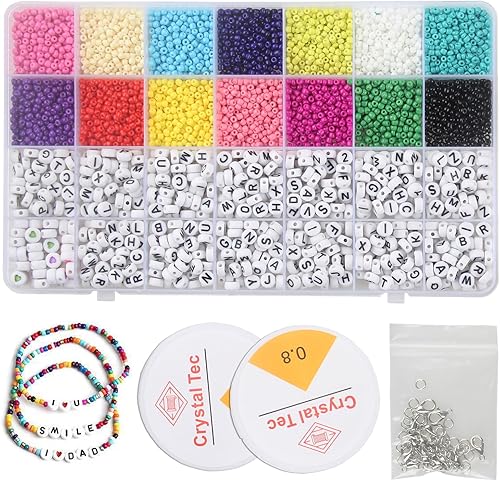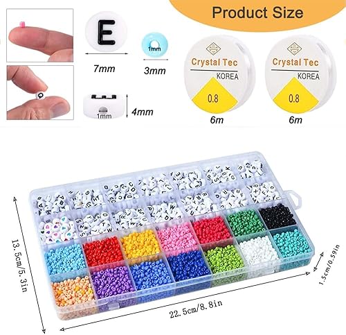 10000+ perles pour bracelet, 3mm perles de rocaille couleurs kit, 24 couleurs perles Lettres avec cordon élastique pour Adulte Enfant Noël anniversaire création de bijoux bracelets collier