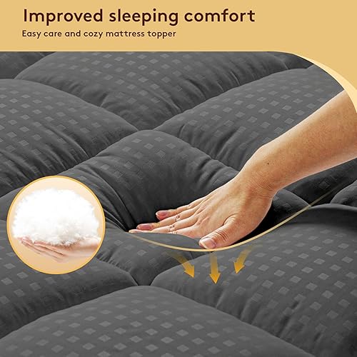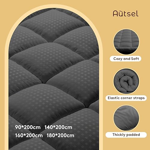 Autsel Surmatelas 160 x 200cm Couvre Matelas en Microfibre Extra Doux et Respirant Surmatelas avec Bon Soutien (Gris Clair)