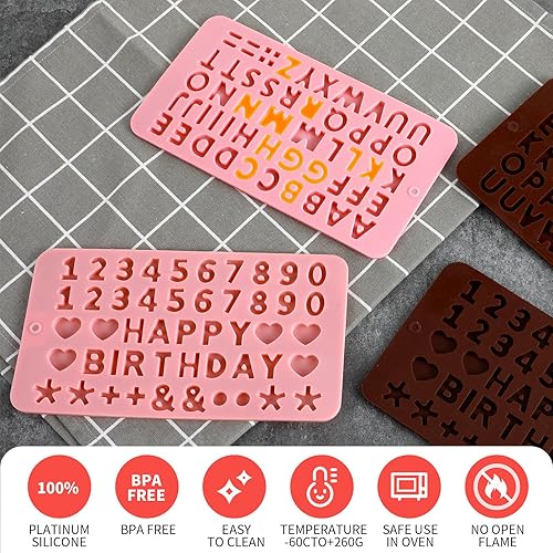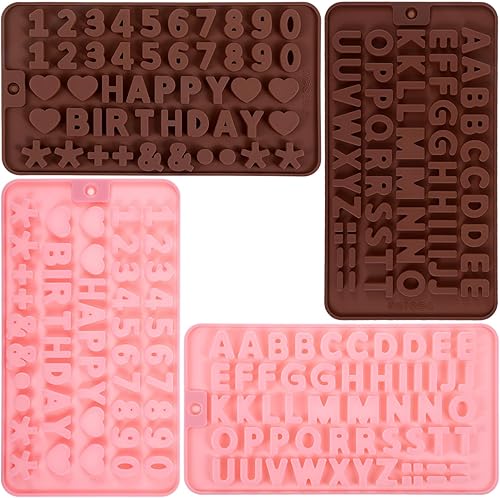 Oruola Lot de 4 moules en forme de lettres de l'alphabet, moules à chocolat, ustensiles de cuisine pour chocolats, biscuits, glaçons, produits de production de chocolats, rose et marron