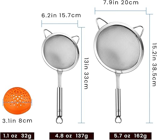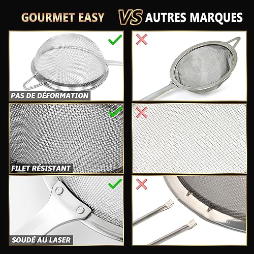 Lot de Passoires en Acier Inoxydable | 1 grande passoire, 1 petite passoire fine, 1 mini passoire pour conserves | Qualité supérieure avec cadre large et poignée | Passoire pâtes, tamis farine (SS)