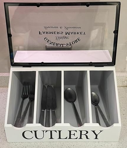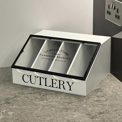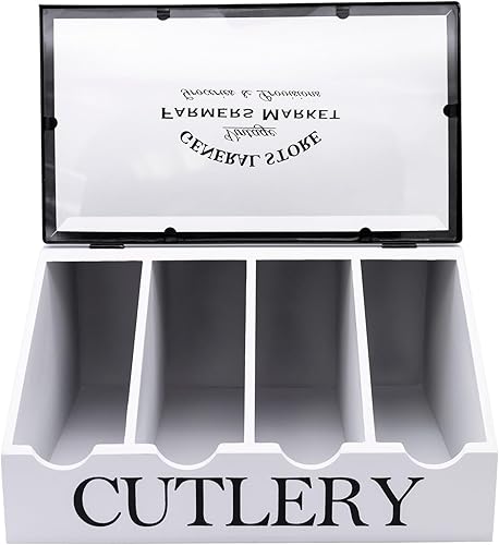 Maison Des Cadeaux Porte-couverts en bois, organiseurs d'ustensiles de cuisine, argenterie, fourchettes de cuisine, cuillères, compartiments faciles à nettoyer, séparateurs profonds (tz 17)