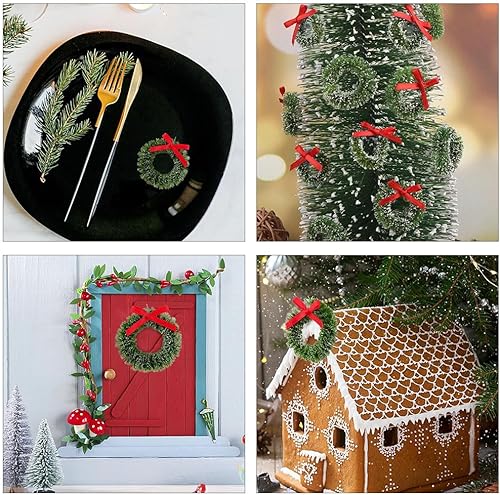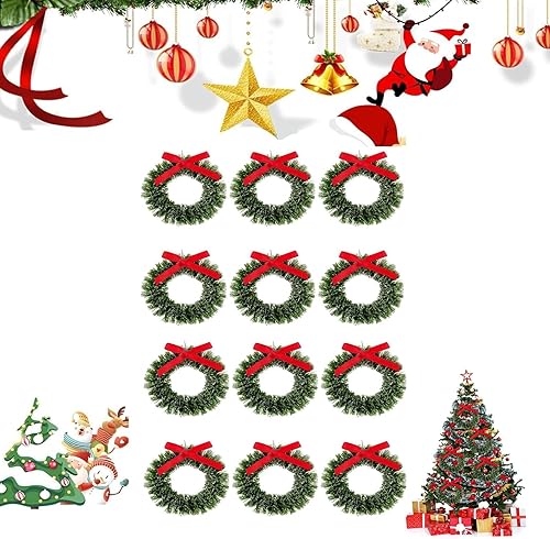 Mini Guirlande de Noel,Couronne de Noel Miniature,Mini Couronne de Noel,Couronne de Noël,Guirlande de Noël,Guirlande de Noël Artificielle,Couronne de Noel pour Porte,Anneaux de Bougie de Noël,12 Pcs