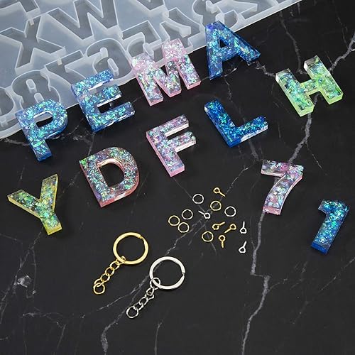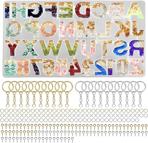 MaoXinTek Moule en Silicone Alphabet, 221Pcs Bijoux Moulage Outils Effacer Résine Époxy Résine Moules pour Pendentifs Bracelet Fabrication de Bricolage Artisanat