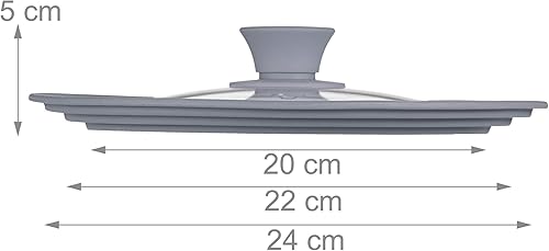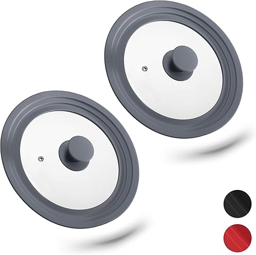Relaxdays Lot de 2 couvercles universels, Verre, Universel, Rebord Silicone, Trou Vapeur, Casseroles, poêles, D 20-24 cm, Gris