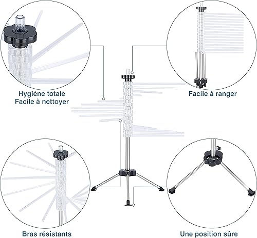 smartpeas Sechoir A Pate Fraiche – Appareil INOX/Séchoir À Pâtes Fraiches -16 Bras A Le Support De Sechage des Pates +Plus: Ebook