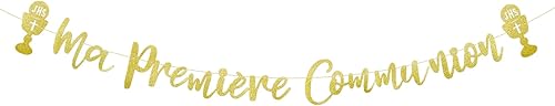 Ma Première Communion Bannière Banderole Baptême Pailleté Papier Guirlande Bunting Banner DIY Décoration Suspendue Feston Fête pour Célébrer la Sainte Communion