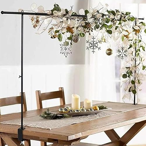 Support de tige de table haut au-dessus de la table, supports de rail suspendus, cadre en arc métallique réglable avec pinces pour décoration d'anniversaire/mariage, noir