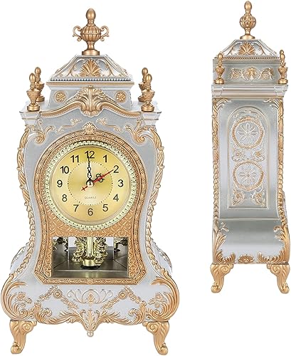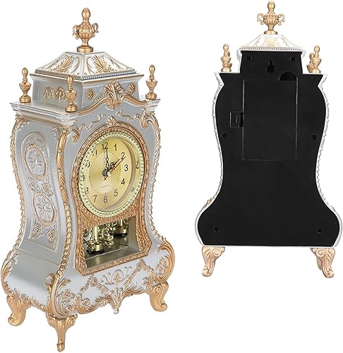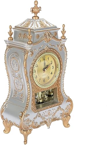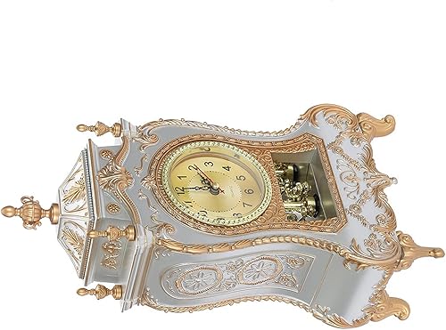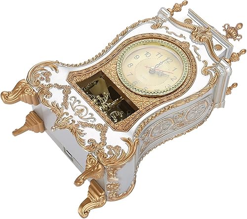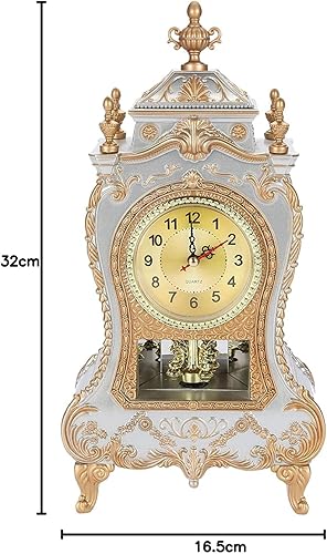 Horloge de Table Vintage Grande Horloge de Cheminée Dorée en Plastique de Style Vintage en Plastique Horloge de Table Antique Maison Hôtel Décoratif Bureau Réveils (Rouge brunâtre) (Blanc)