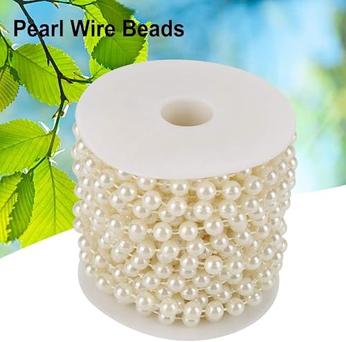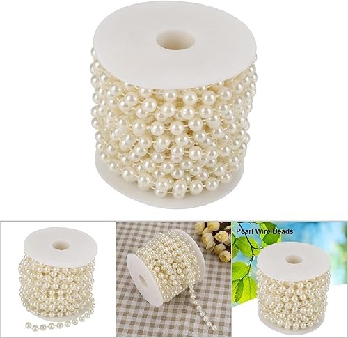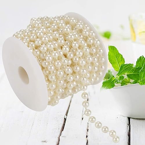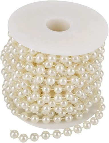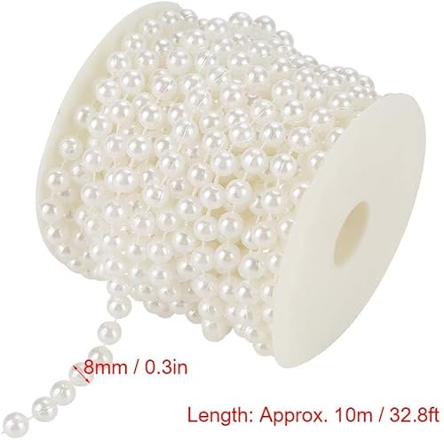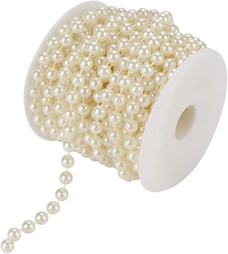 Guirlande de Perles de Fausse Perle, Guirlande de Fausses Perles de 8 mm, Rouleau de Perles de Fil de Perles, Rouleau de Perles de Perles pour la fête de Mariage 32,8 Pieds(Beige)