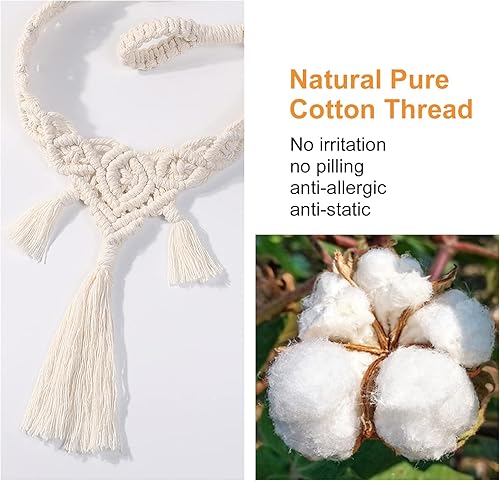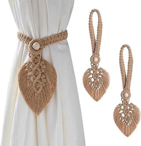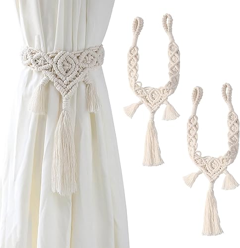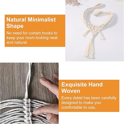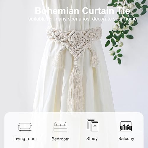MOROBOR Lot de 2 embrasses de rideaux de couleur crème bohème pour décoration d'intérieur, rideaux de ferme, en corde de coton tissée à la main, beige