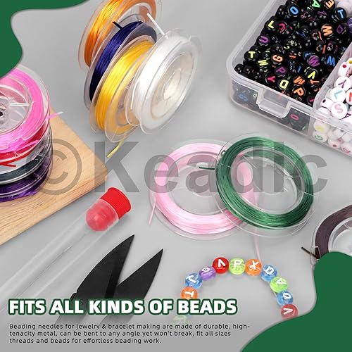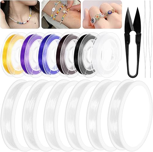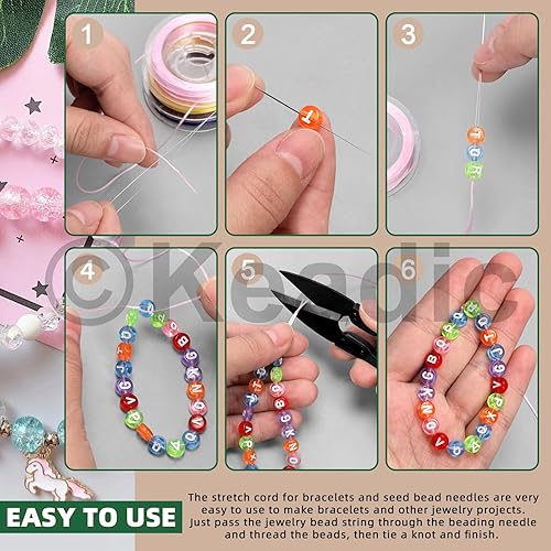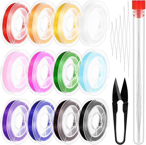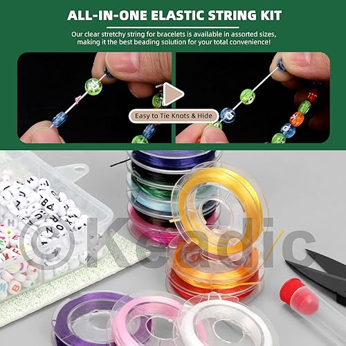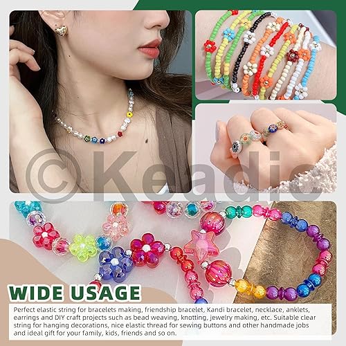 Keadic Lot de 18 cordons élastiques plats de 0,8 mm avec étui de rangement pour la fabrication de bracelets et colliers - 12 couleurs - Fil magique extensible pour perles d'argile/cristal/poney