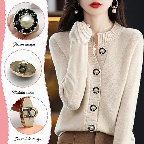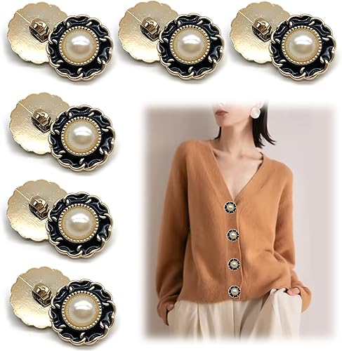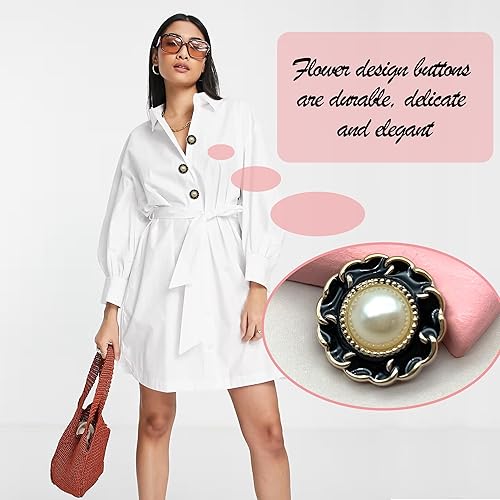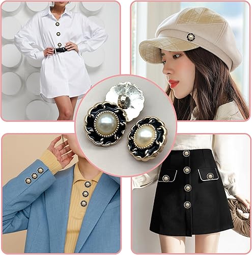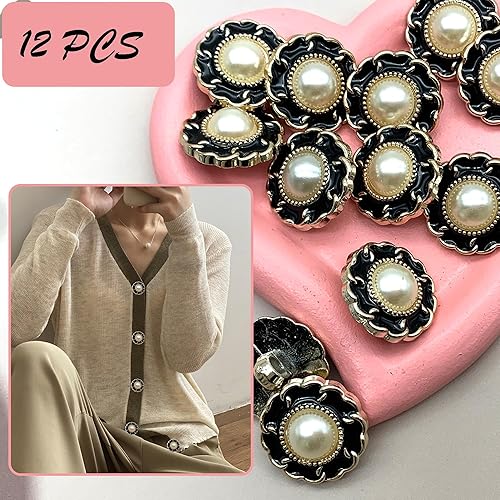 DHER 12 pièces Bouton de Couture pour Vêtements Bouton décoratif boutons décoratifs de chemise, boutons de cardigan, boutons de perles de manteau de trench, boutons de robe de bijouterie (Noir, 21mm)