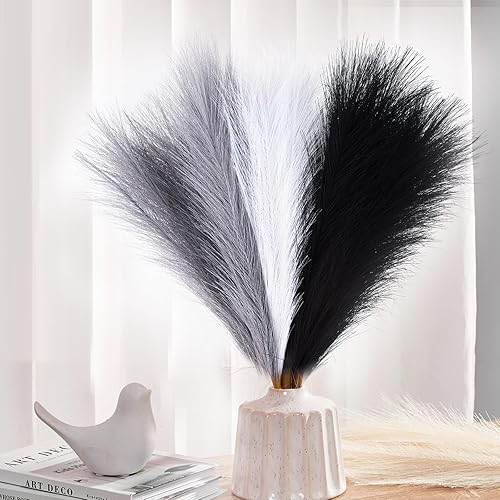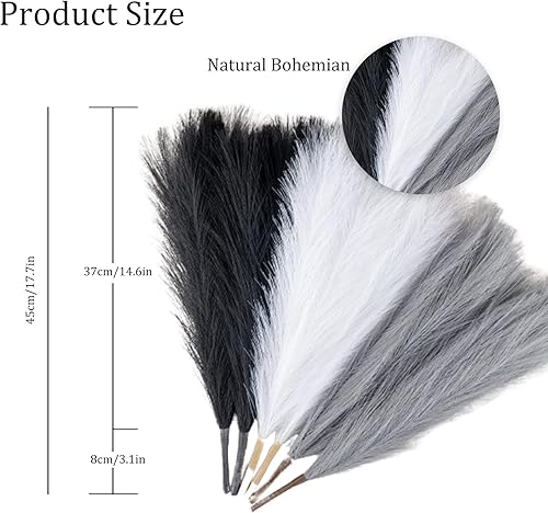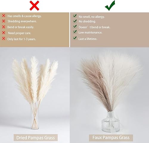 Herbe de la pampa naturelle séchée de 45 cm, décoration de mariage, décoration de cuisine, décoration d'intérieur (café clair, 3 blancs de riz)