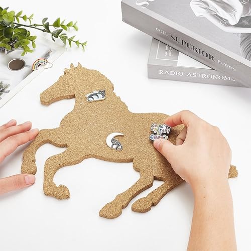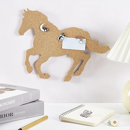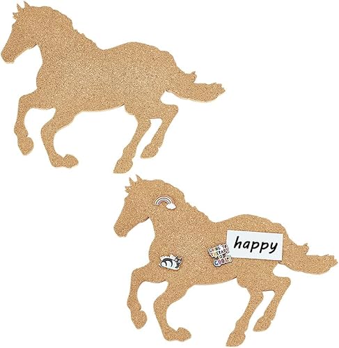AHANDMAKER Lot de 2 tableaux d'affichage décoratifs en liège, 27 x 30 cm, tableau d'affichage en forme de cheval, tableaux en liège de 0,8 cm d'épaisseur pour mur, bureau, maison, école, broche