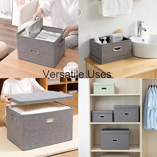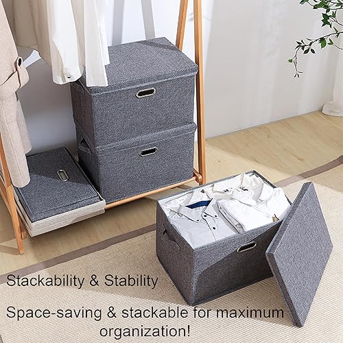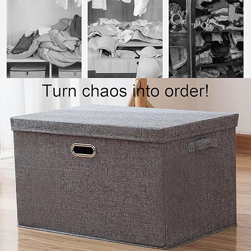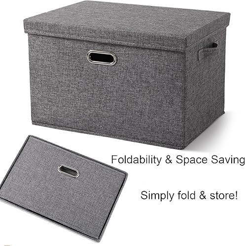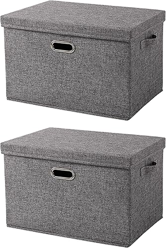 Wuudi Boîtes de Rangement Pliables avec Couvercle en Lin Lot de 2 Boîte en Tissu avec Poignées Empilable Caisses de Rangement Idéal pour Vêtements, Jouets, Livres, Étagères et Placards 44x30x29 cm