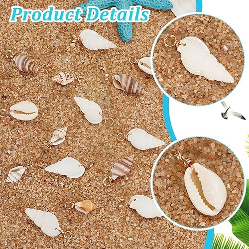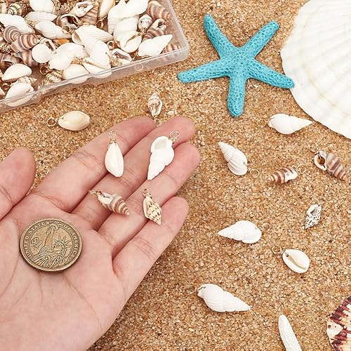 PH PandaHall 100pcs 4 Styles Pendentifs en Coquillages Naturels Lien Coquillages pour la Fabrication de Bijoux Connecteurs en Coquillages Breloque D'Été pour la Maison Fête Sur la Plage 17~29mm