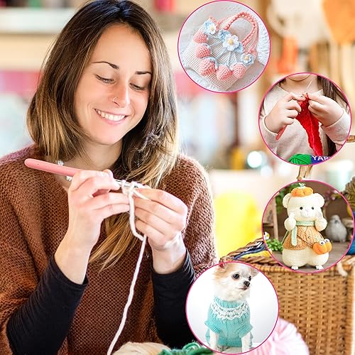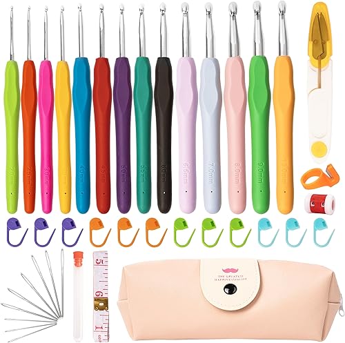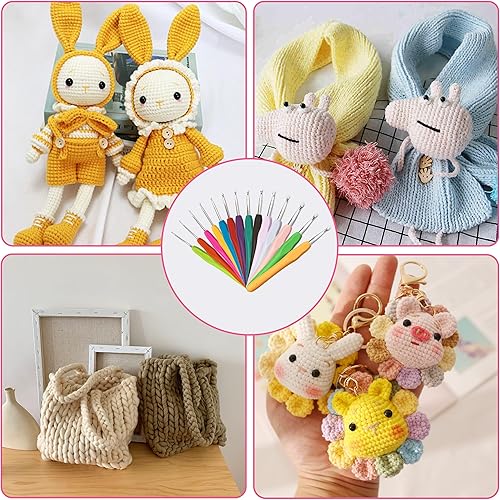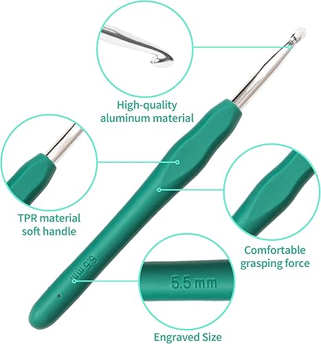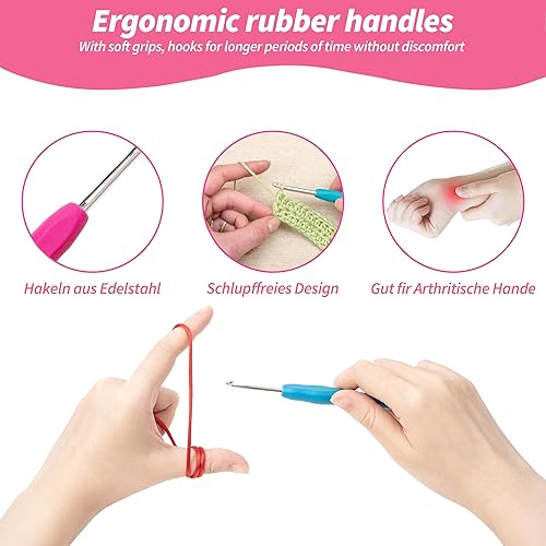 Aiguilles à Crochet Set, Domkan Ensemble de 14 pcs Crochet à Tricoter avec Poignées Ergonomiques en Caoutchouc à Prise Souple, kits de Crochet pour Adultes Débutants