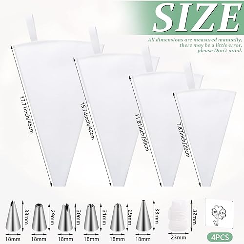 cersaty® Lot de 4 poches à douille, réutilisables, avec 1 jeu de douilles, 4 crochets transparents, pour la décoration de pâtisseries (coton)