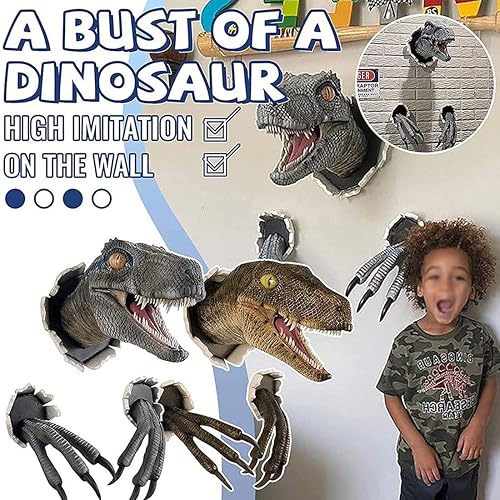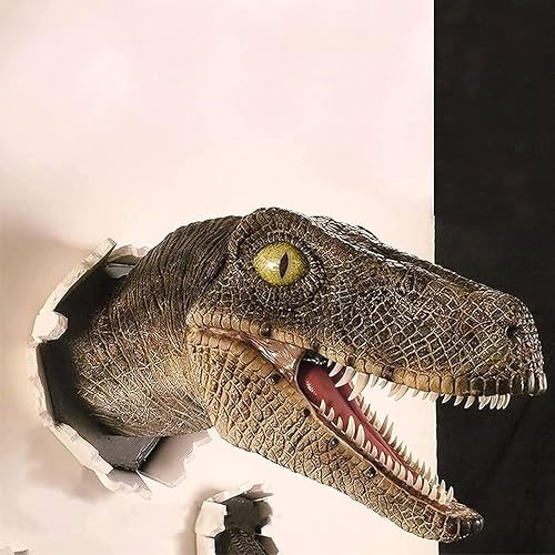 SCGHBK 3D dinosaure mural sculpture dinosaure tête murale résine dinosaure statue dinosaure Home chambre à coucher accessoires (Yellow)