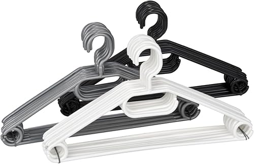 WENKO Cintres Easy Noir, Gris, Blanc - Set de 10, cintres, Barre pour Pantalons, encoches Jupes, Porte-écharpe et Cravate, Polypropylène, 40.5 x 21 x 0.7 cm, Assorti