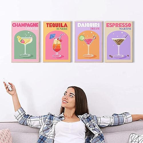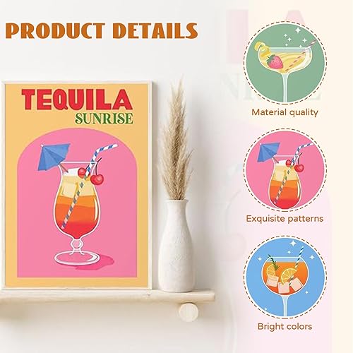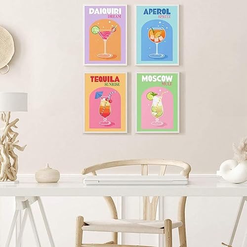 CharmBurst 6 pièces affiches rétro colorées pour cocktails, art mural sur toile, impression amusante de verre de vin alcoolisé, décoration murale esthétique pour pièces, 20x25 cm non encadrée